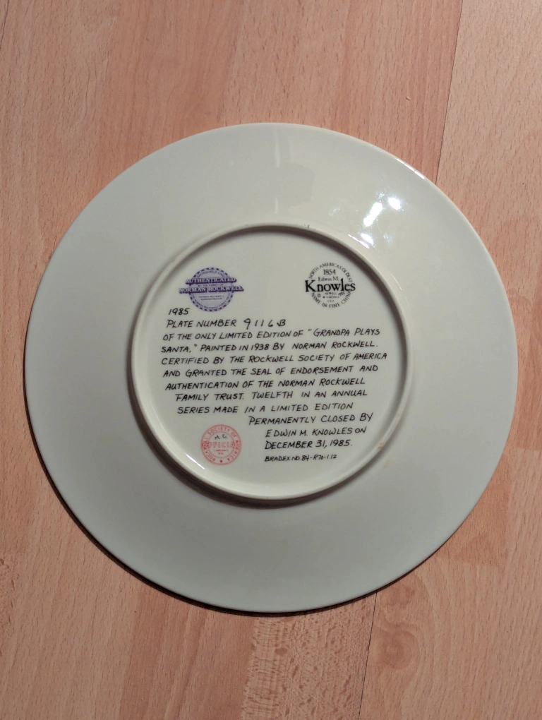 LIKE NEW vintage Norman Rockwell Christmas Plate 1985 "Grandpa Plays Santa" Knowles