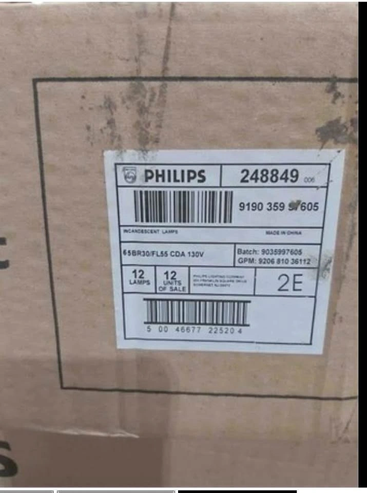 New, packed in a box. Lot Of 12 Philips 248849-65BR30/FL55 130V BR30 Reflector Flood Light Bulbs. Estimated MSRP: $199. Item Condition: New. Package Dimensions: 37x30x15cm. Feel free to message if you have any questions!