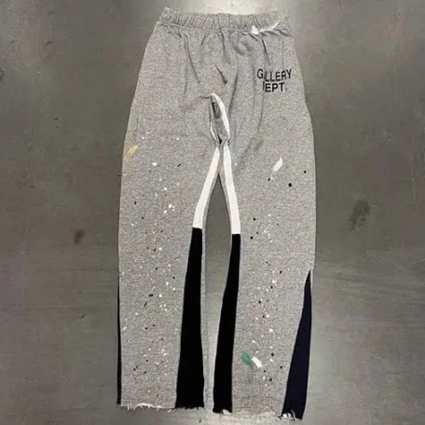 Selling a pair of Gallery Dept. grey sweatpants. They have a unique design with paint splatters and cut-out details. Great for a casual, stylish look! brand new with bag