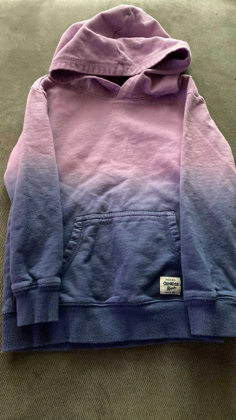 45Selling a cute OshKosh B'gosh hoodie in size 5/5A. It features a lovely purple to blue ombre design. Perfect for keeping your little one cozy! Washed. Hung Dry. Smoke Free. Pet Free. No porch pick up Pick up only Beatrice and Wilson Oshawa