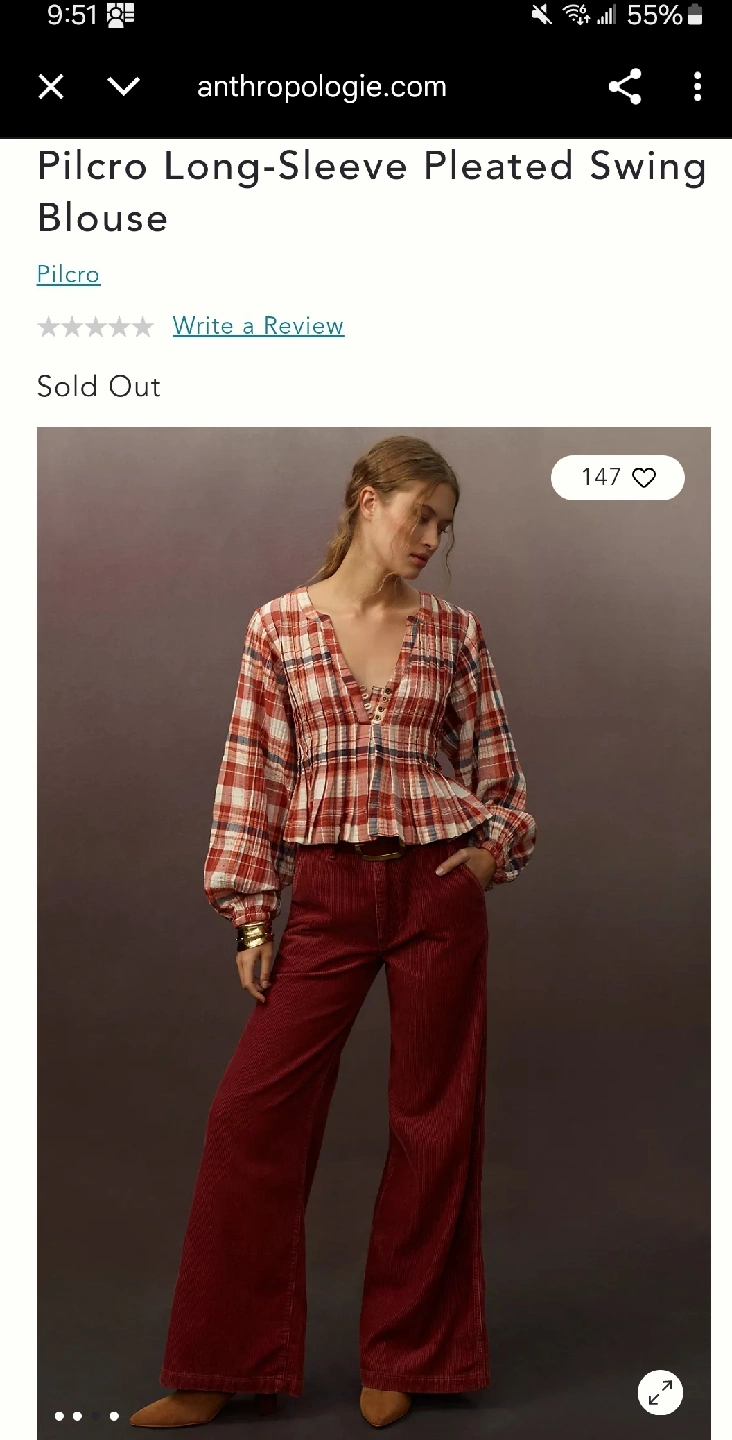 Pilcro long-sleeve pleated swing blouse from Anthropologie. It features a v-neck and a button closure. It's a super cute top!