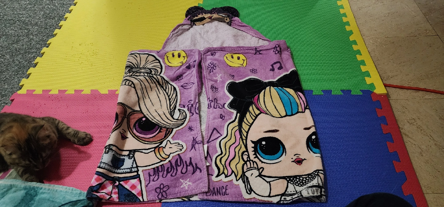 Selling a variety of kids hooded towels featuring Hello Kitty, Disney Princesses, LOL Surprise, and a Mermaid design. Great for bath time or the pool! 3$ each Pick up Victoria park and Danforth