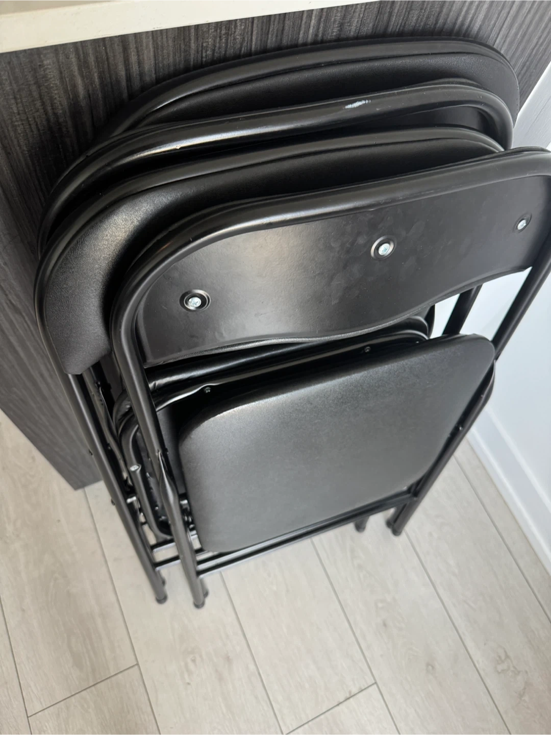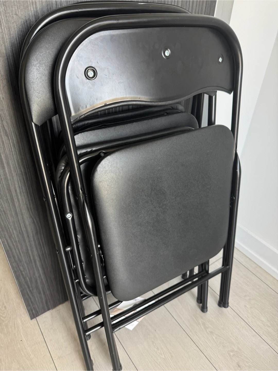 Selling a set of 3 black folding chairs. They're in great condition and perfect for extra seating when you have guests over. Easy to store when not in use too