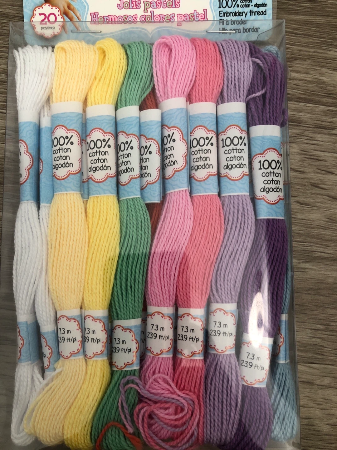 125Get creative with this set of Jolis Pastels embroidery thread! Includes 20 skeins in beautiful pastel colours. Each skein contains 7.3 meters (23.9 ft) of 100% cotton thread, perfect for all your embroidery and crafting projects