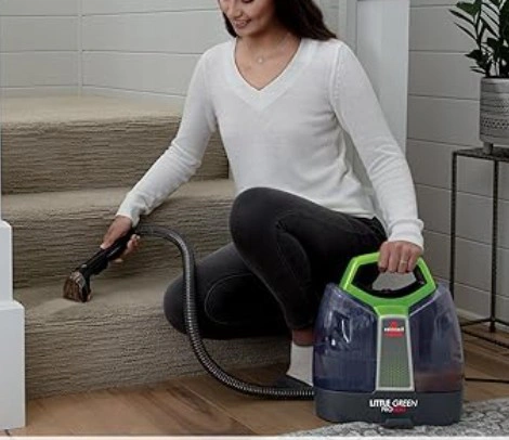 Bissell Little Green ProHeat portable carpet cleaner! It's great for quick cleanups and spot treatments around the house. It's in good condition and ready to go to a new home. Perfect for carpets, upholstery, and more! Includes a 3-n-1 stair tool for those hard to reach places
