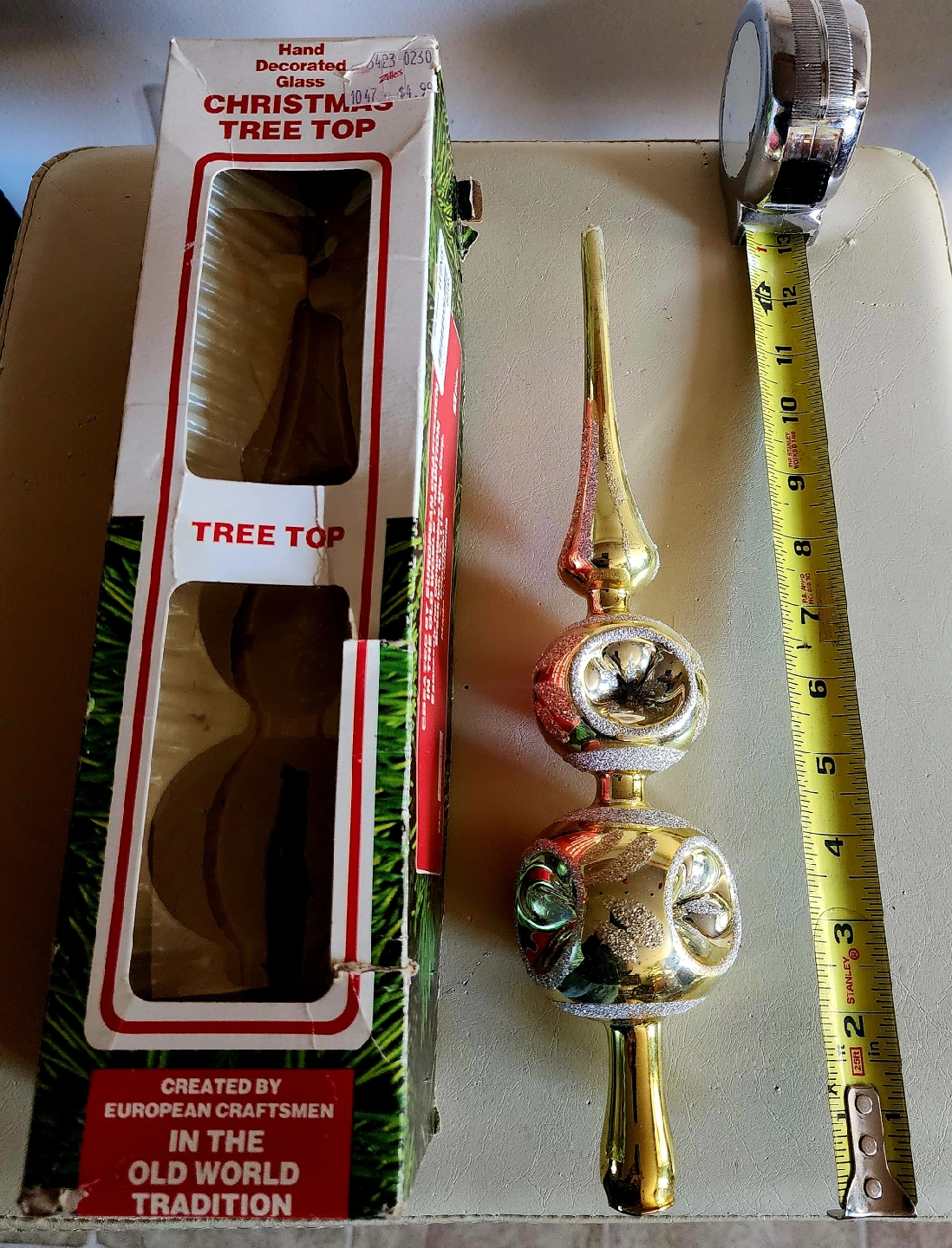 Add some vintage charm to your Christmas tree with this hand-decorated glass tree topper! It was created by European craftsmen in the old-world tradition and expressly made for Commodore Mfg Corp. Comes with the original box!