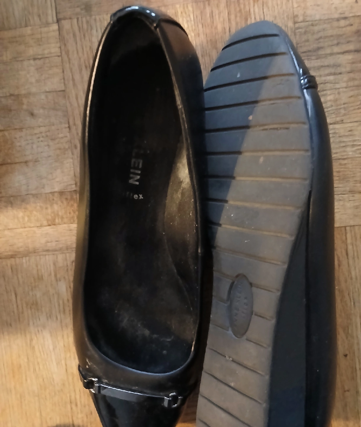 Selling a pair of Anne Klein iflex flats in black. They're perfect for everyday wear or dressing up a bit. A classic and comfortable style! size 9 patent leather