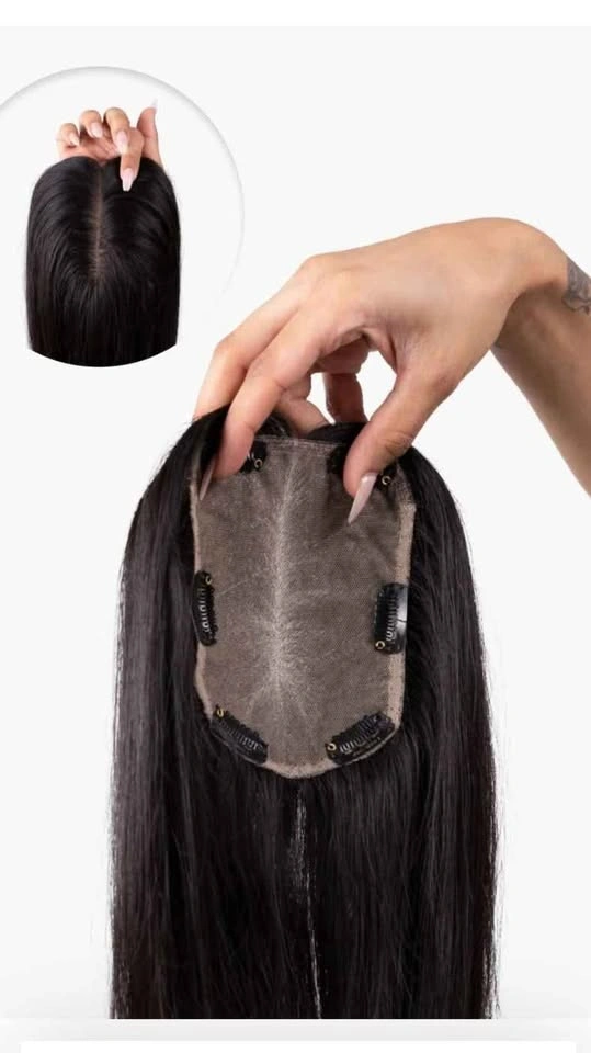 36This hair topper is perfect for anyone experiencing hair thinning or scalp line widening. Lightweight and breathable, it’s comfortable for all-day wear. The topper is heat resistant, allowing you to style and color it like your own hair. Silk base, making it a top choice for women looking for realistic coverage and added volume. Key Features: Silk Base: Creates a realistic scalp illusion. 100% Human Hair: Premium quality for a natural blend. Base Size: 4*5 inches for excellent coverage. Natural Appearance: Blends seamlessly with your hair. Seamless Clip-On Application: Easy to attach for instant results. Lightweight and Breathable: Comfortable for long wear. Heat Resistant: Can be styled and colored as desired. Natural dark brown color. You can color it to match your hair shade. Whether you're dealing with bald spots, thinning hair, or simply want extra volume, this topper is your go-to solution.