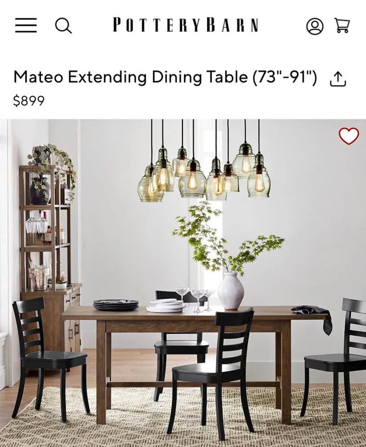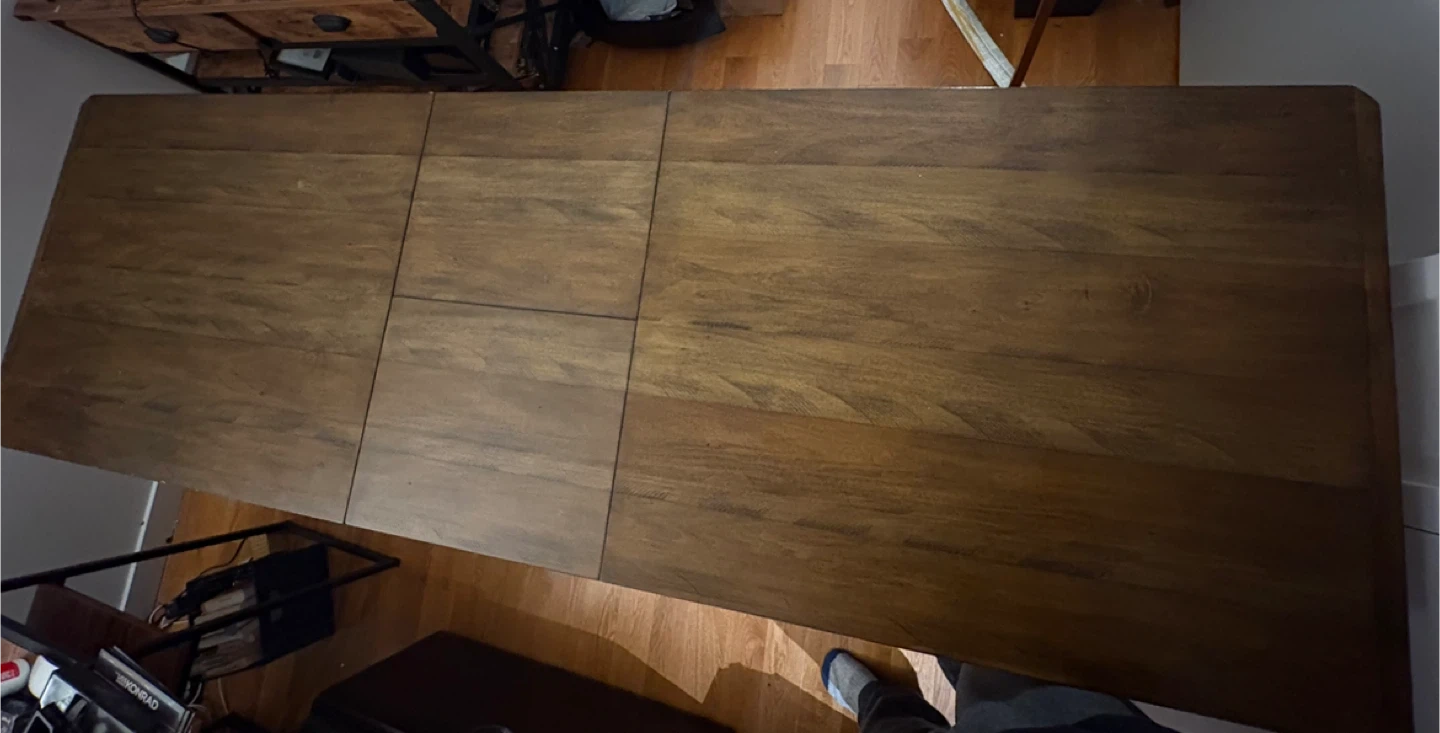 Selling a Pottery Barn Mateo extending dining table. It’s a beautiful table that extends from 73 in to 91 in with the built-in butterfly leaf. Seats 6-8 people. Originally bought for $899 + shipping and tax. We love this table and wish we could keep it; selling only because it's too big for our current unit. Table is in very good condition — was barely used; very minor wear (some small surface/edge marks).