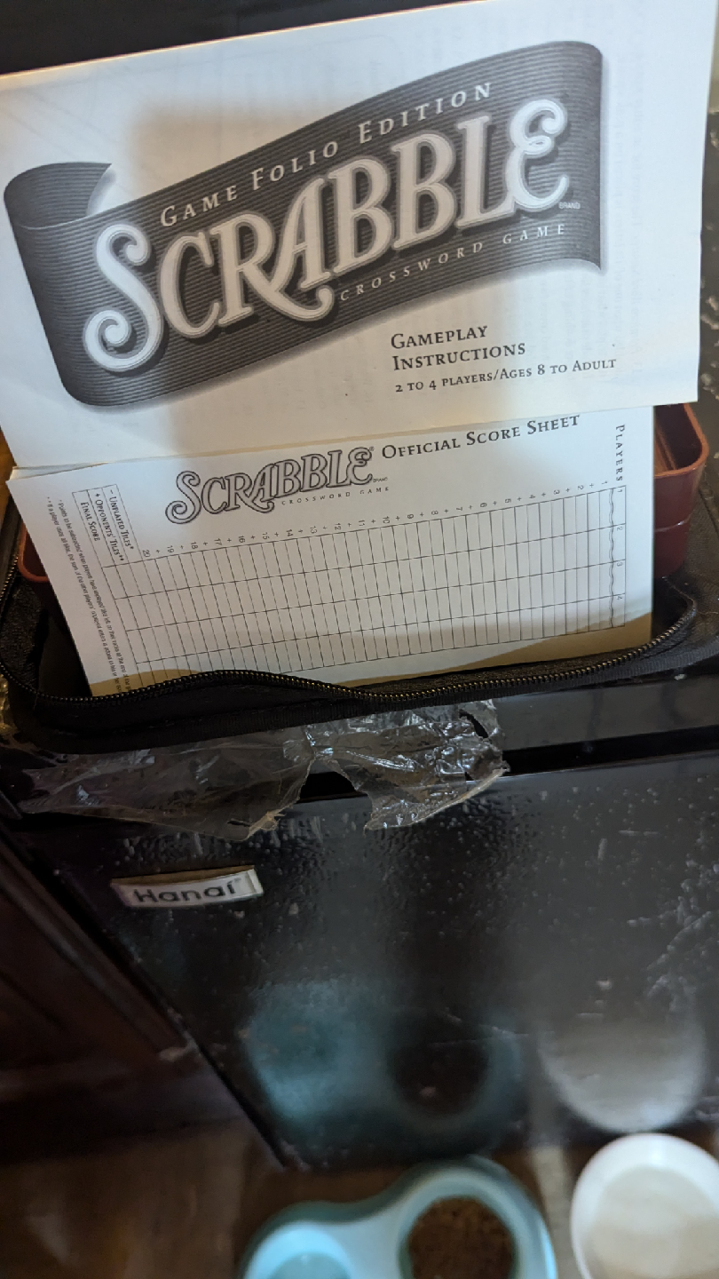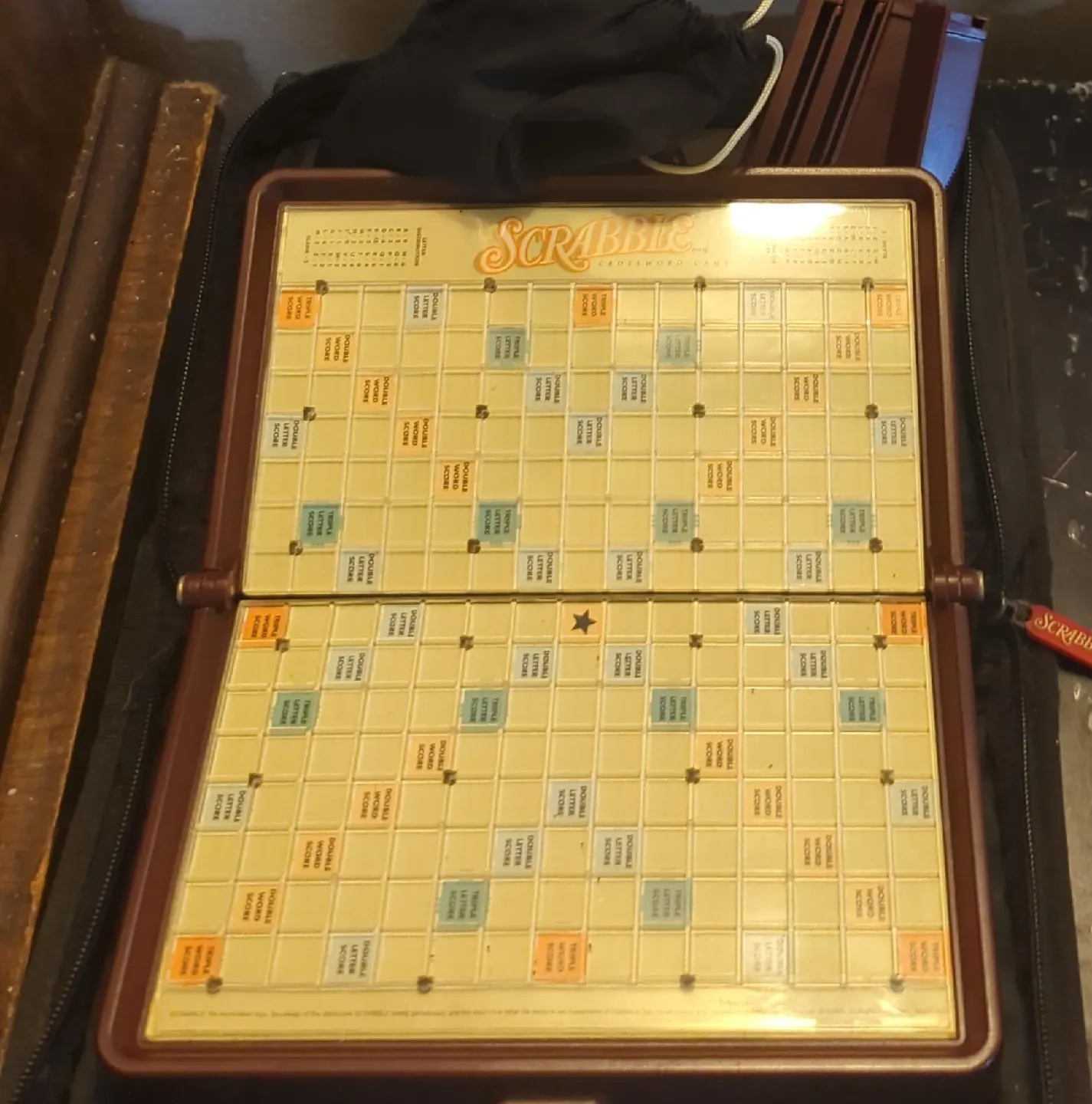 Selling a Scrabble Crossword Game, Game Folio Edition! It comes with the board, tiles, tile racks, and instructions. Perfect for family game night or challenging a friend to a wordy duel