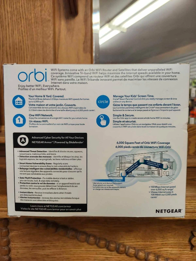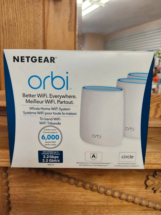 Selling a brand new Netgear Orbi Whole Home Tri-band WiFi System, delivering speeds up to 2.2 Gbps and covering up to 6,000 square feet. This system ensures seamless WiFi coverage throughout your home, eliminating dead zones and buffering.
