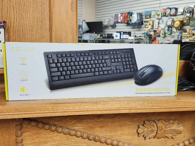 Enhance your computer setup with this Delux wireless keyboard and mouse combo, offering reliable 2.4GHz connectivity for a clutter-free workspace. This combo is in good, used condition, perfect for everyday use. Key Features: * Wireless 2.4GHz connection * Includes both keyboard and mouse * Sleek, ergonomic design Looking to upgrade your office or home setup? This combo is a great addition! If the ad is up, it's available!