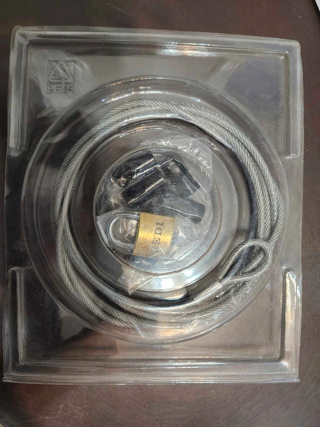 Brand new BEDI Safe Data Integrity cable lock. This cable lock can be used to secure your computer or other hardware and prevent theft.