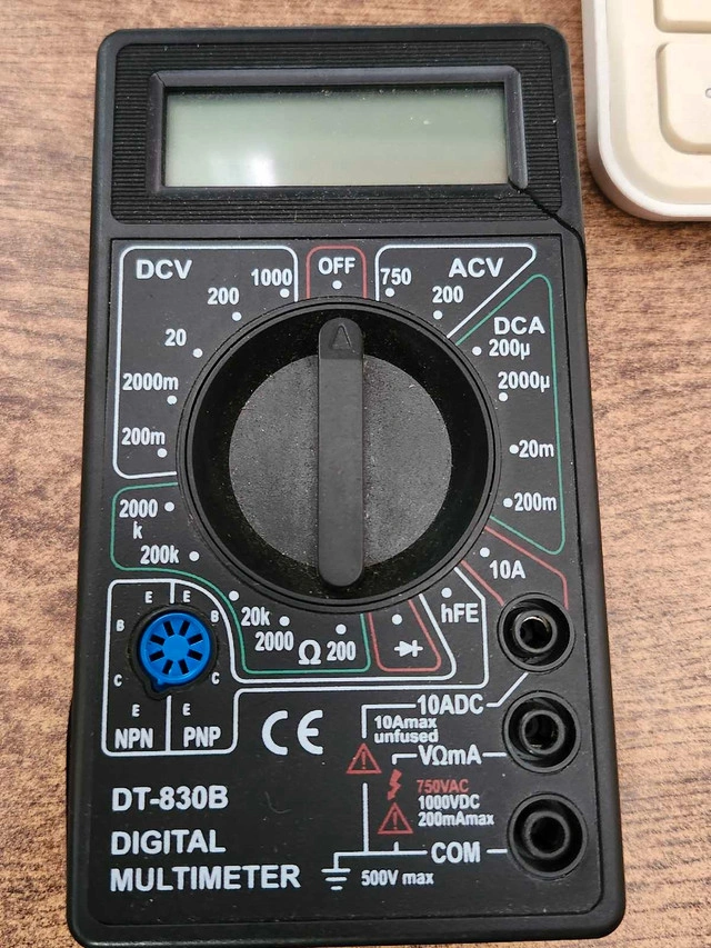 Used DT-830B Digital Multimeter, perfect for basic electrical testing and troubleshooting, featuring multiple voltage, current, and resistance ranges for versatile use. Additional specifications include: