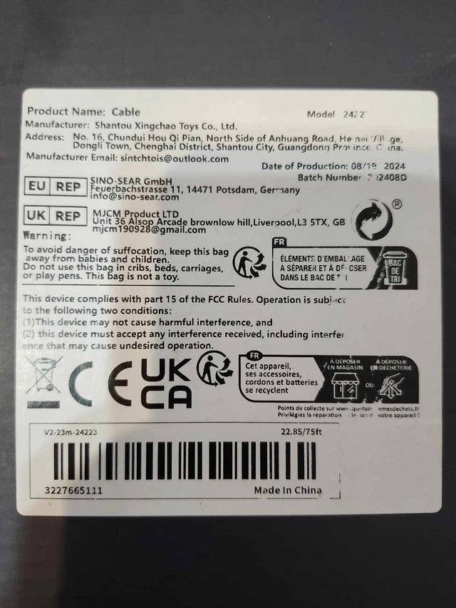 * Manufacturer: Shantou Xingchao Toys Co. Ltd.