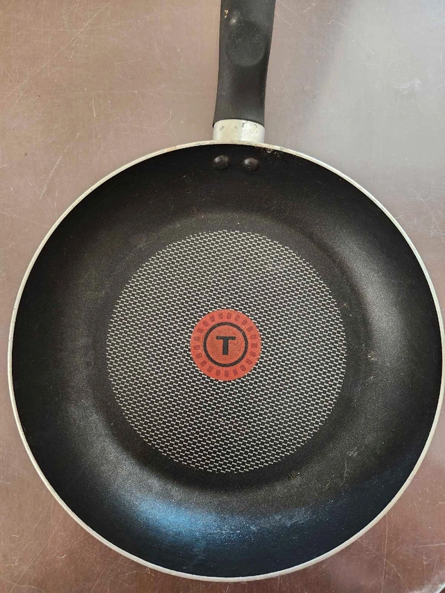 This T-fal frying pan, with its iconic red spot, is ready to help you whip up delicious meals! This pan has been used but it still has plenty of life left for sautéing, frying, and flipping your favourite recipes. It's seen a few meals, so it's got character!