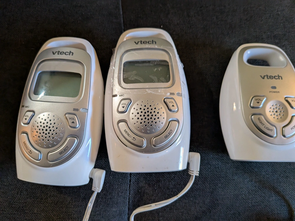 Selling a VTech baby monitor set. Includes two parent unit and a baby unit. Comes with the chargers as well.