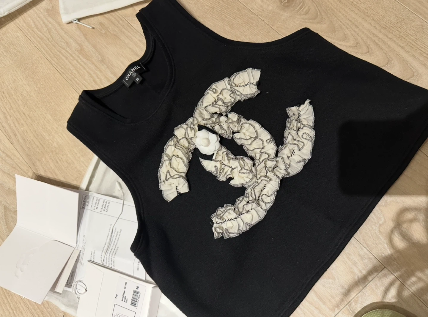 33Selling a beautiful Chanel 22 black leather bag Large size, white logo is limited. Price; 7500 The Chanel crop top is a size 36. Jennie’s wearing this top, Comes with the original box and all the papers. Price; 3200 I bought 98 Yorkville