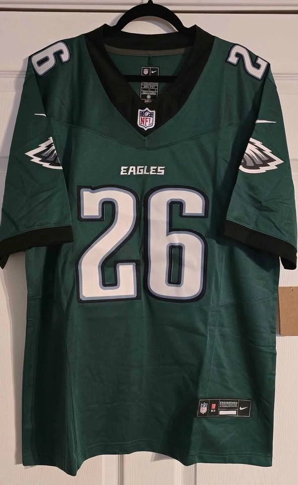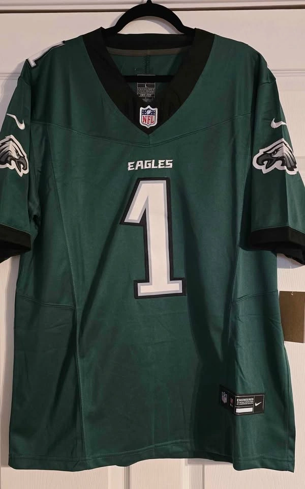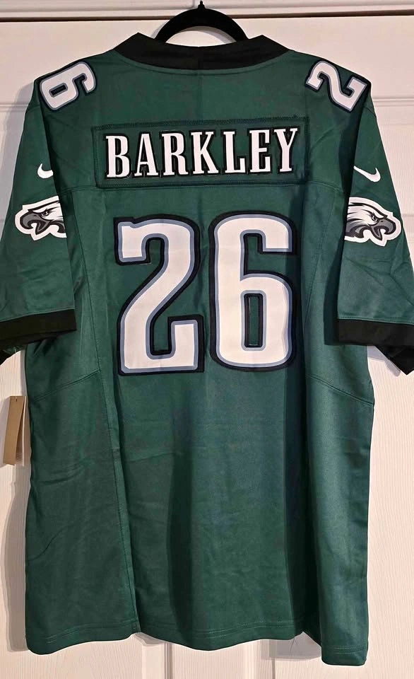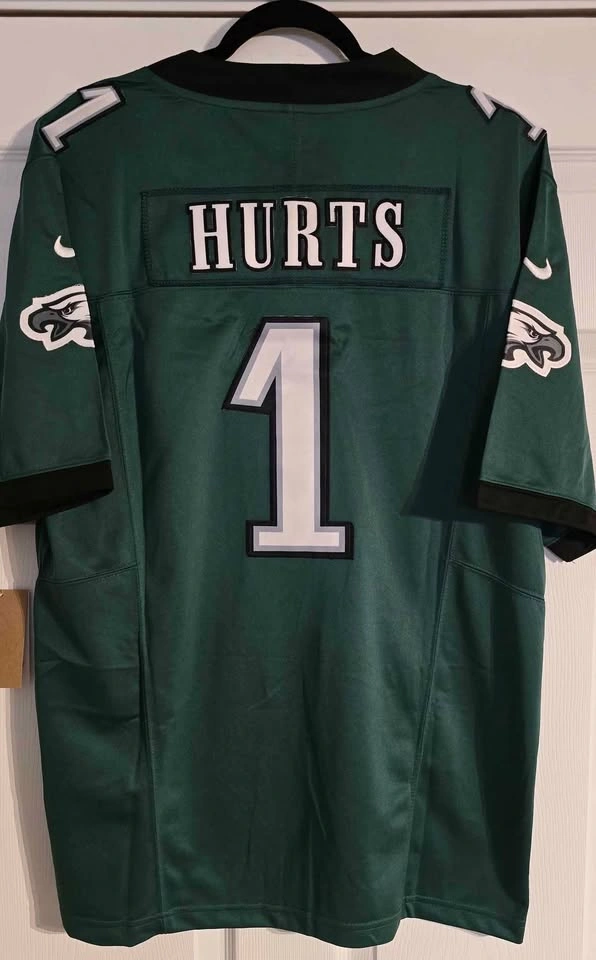 5#26 Barkley and #1 Hurts Jerseys available: #26 Barkley - Green colour - Size Medium, Large and XL. #1 Hurts - Green colour - Size Medium, Large and XL. Jerseys are stitched. Great quality. Loose fit.