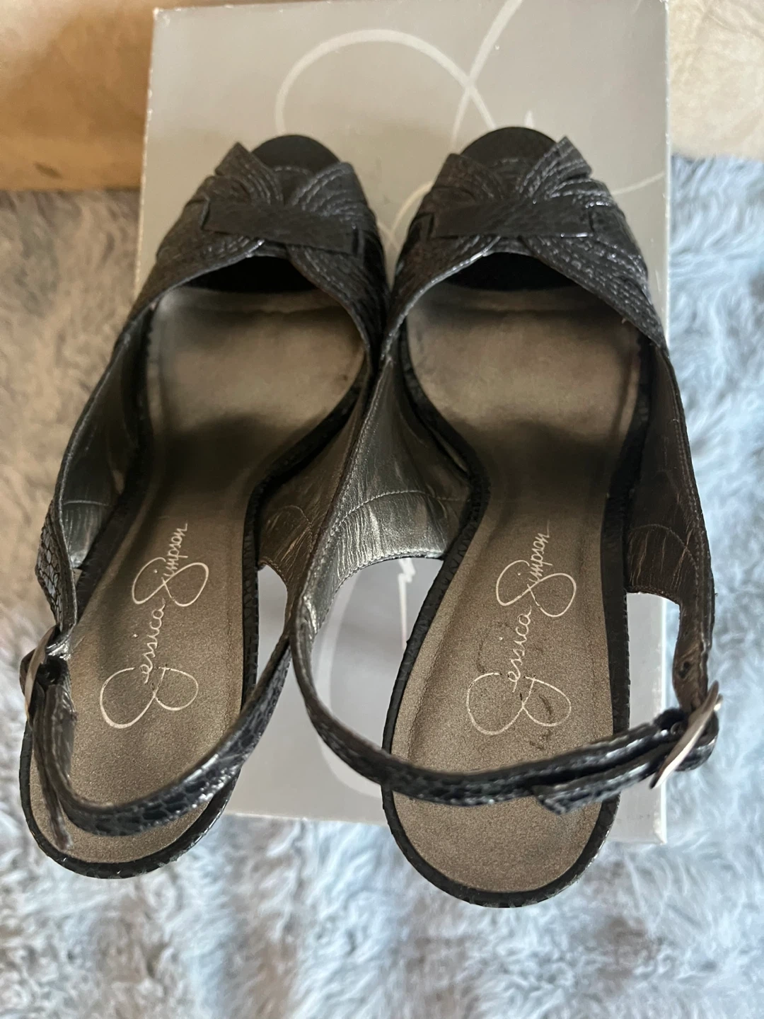 Jessica Simpson Reese Black Patent Snake Heels - Size 8.5