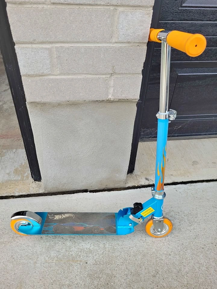 Kids Hot Wheels scooter. Max height for handlebar is 27 inches (it's too small for my 6yr old). Metal. Pickup only. Located in Wellesley.