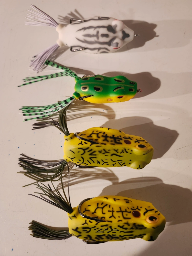 Fishing tackle, with plano case & 16 lures 4 crankbaits 3 jerkbaits 1 swimbait 4 topwater 4 frogs 1 plano All lures are new or barely used Asking $35...would cost well over $100 if you paid retail value. Thanks for looking