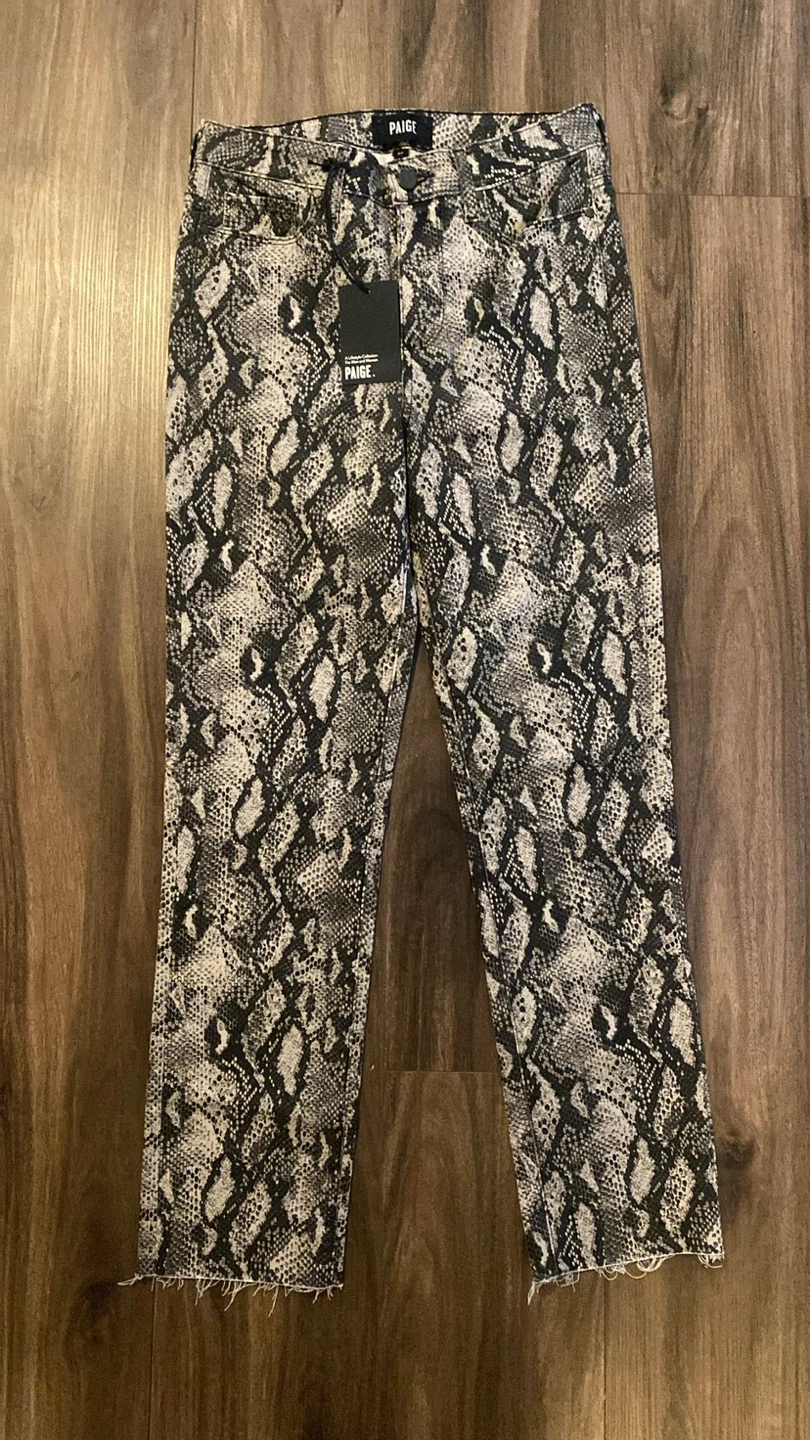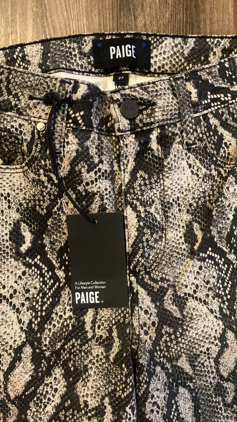 These are brand new Paige jeans with a snakeskin print! They are a size 27 and still have the tags on them. They're a stylish addition to any wardrobe!