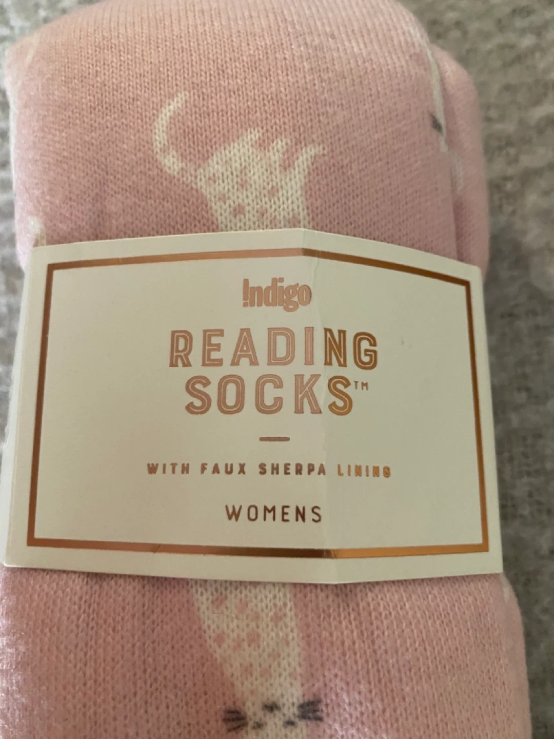 Cozy up with these adorable Indigo Reading Socks! They feature a soft, faux sherpa lining to keep your feet warm while you enjoy a good book. These women's socks have a cute cat pattern on a pink background, perfect for adding a touch of whimsy to your relaxation time 🥕