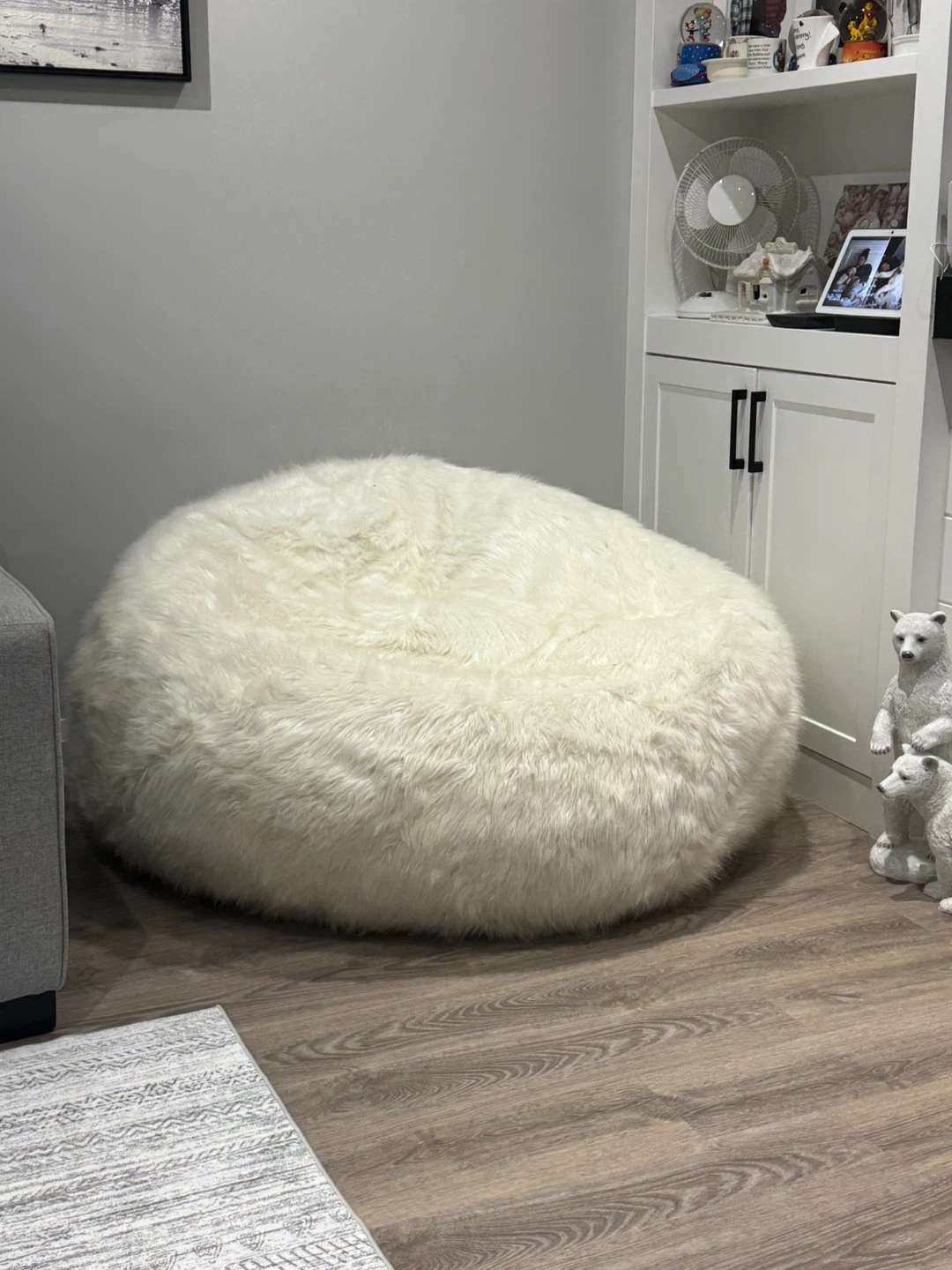 Selling a very comfy, large beanbag chair covered in soft, white faux fur! It's in great condition and would be a cozy addition to any room