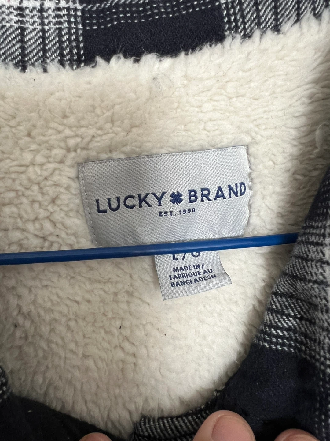 21Cozy up with this Lucky Brand plaid shirt jacket! It's a size large and features a soft sherpa lining, perfect for those chilly days. The classic plaid pattern adds a touch of style to any outfit. Originally bought for $99.50