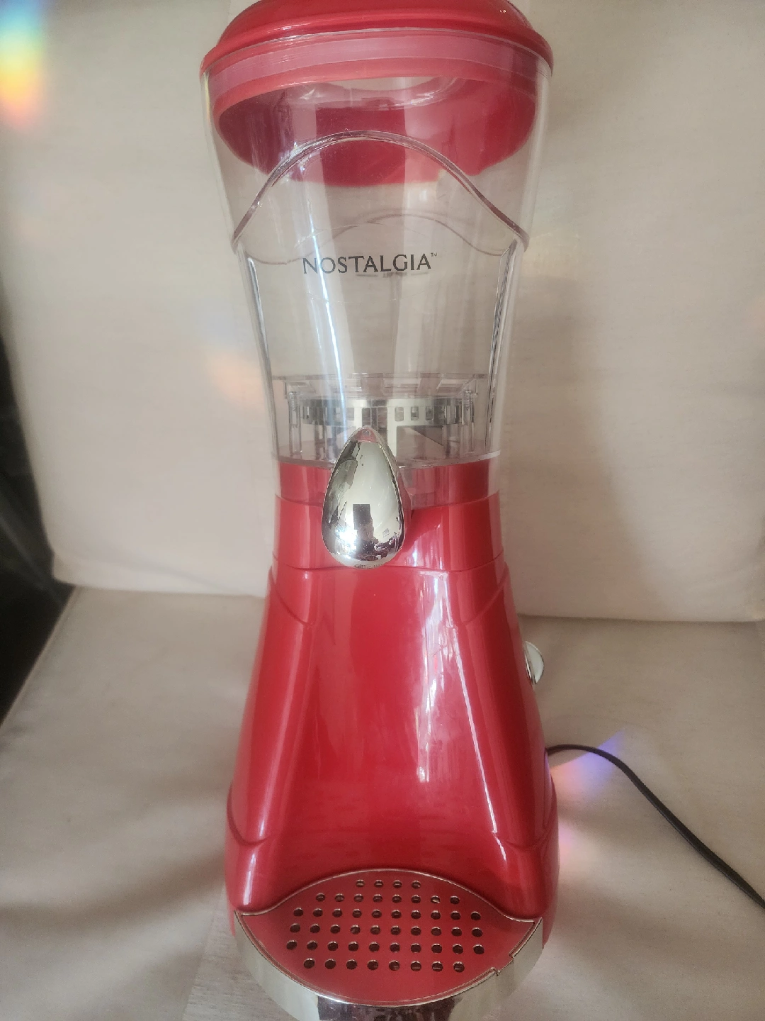 68Get ready to make some tasty margaritas or slushes with this Nostalgia machine! It's in great shape and ready for your next party or just a fun treat at home. The vibrant red colour will add a pop to your kitchen or bar area
