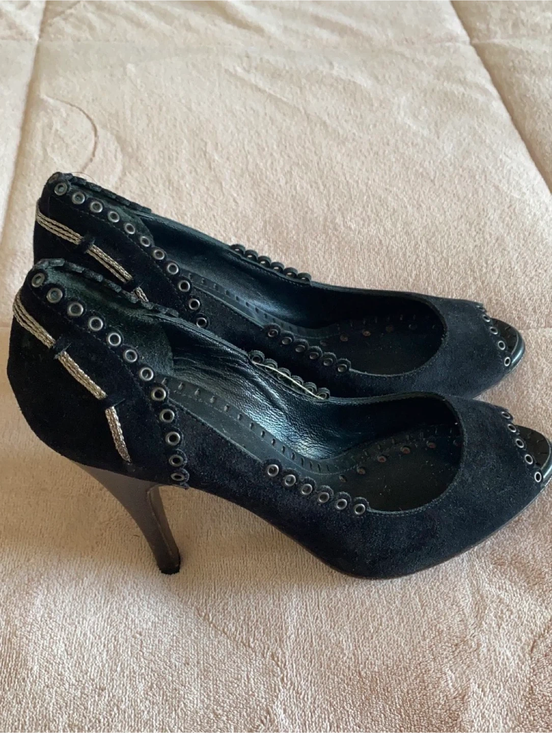 Buy & SellBlack Chanel Suede HeelsBlack Chanel Suede Heels$150Selling a pair of black Chanel suede heels. They have a peep toe and decorative grommets. Great for a night outConditionGoodSize6.5BrandChanel WHERE TO MEETCheck LocationView MapSELLERverifiedyvonneSoundview1146 reviews0 chats·3 favorites·35 viewsSEND CHAT TO SELLERHi yvonne! I’m interested in your listing.Hi yvonne! I’m interested in your listing.Get the Karrot app to chatSign In to chat