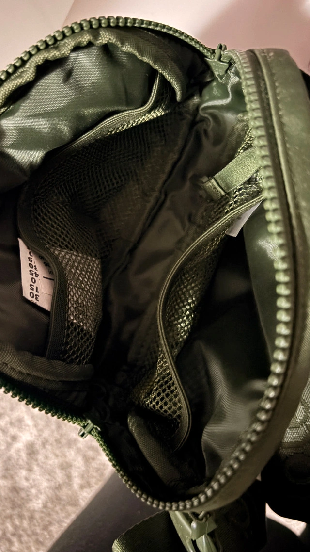 17This belt bag is perfect for keeping your essentials close! It features a convenient hands-free design and is made from durable, water-resistant material in a stylish olive green colour. Key Features: * Colour: Olive Green * Material: Water-resistant nylon blend * Adjustable strap * Interior pockets This belt bag has been lightly enjoyed and is in excellent condition. Asking Price: $45 CAD If you're seeing this ad, you know the bag is still available and ready for a new adventure. Snatch it up before someone else does!