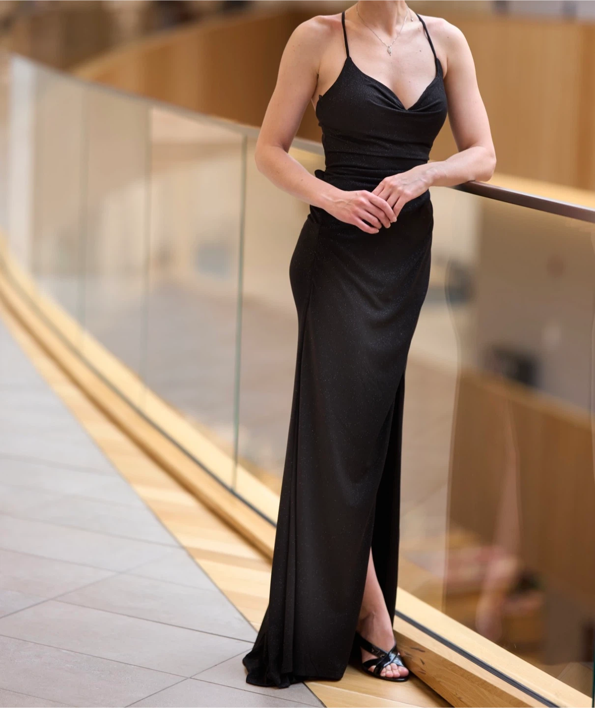 Purchased for $349.99 – selling at a great price! Color: Black with a subtle shimmer Style: Body-hugging fit with elegant draping, high slit, spaghetti straps, and a flattering neckline Perfect for photo shoots, prom, special events, or a glamorous night out. Looks luxurious and highlights your figure beautifully. Message me for more photos or to try it on!