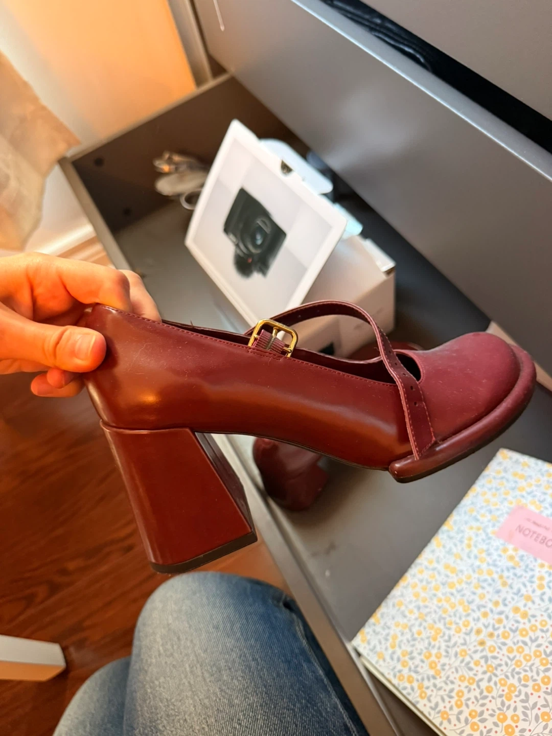 22Selling a pair of Charles & Keith Mary Janes in a beautiful burgundy colour! They are a size. These are perfect for adding a touch of elegance to any outfit. They're in great condition and ready for a new home!