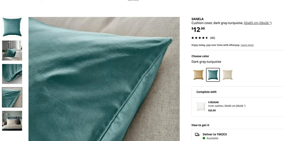 91Downsizing my home sale! Please see my other ads (always adding more!). Will discount purchases of multiple items! If ad is still up, item is available. Located in Millwoods, near Menisa Elementary school. Will provide actual address when pickup is confirmed. *Cash only* Selling TWO IKEA SANELA Cushion covers, dark gray-turquoise, 65x65 cm (26x26 ") also selling a set in the same color of the smaller size 50x50 cm (20x20 ") - see other ads. *Inserts not included* Like-new. Retails $12.99 each at IKEA, so $25.98 + GST for the pair. Asking $15.00 Color is accurate in both pictures - it just depends on lighting.