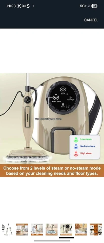 10 in 1 Steam Mop, Adjustable Steam Mode, LED Headlights, Lightweight, Rotating Mop Pads. Surface recommendation: All floors.