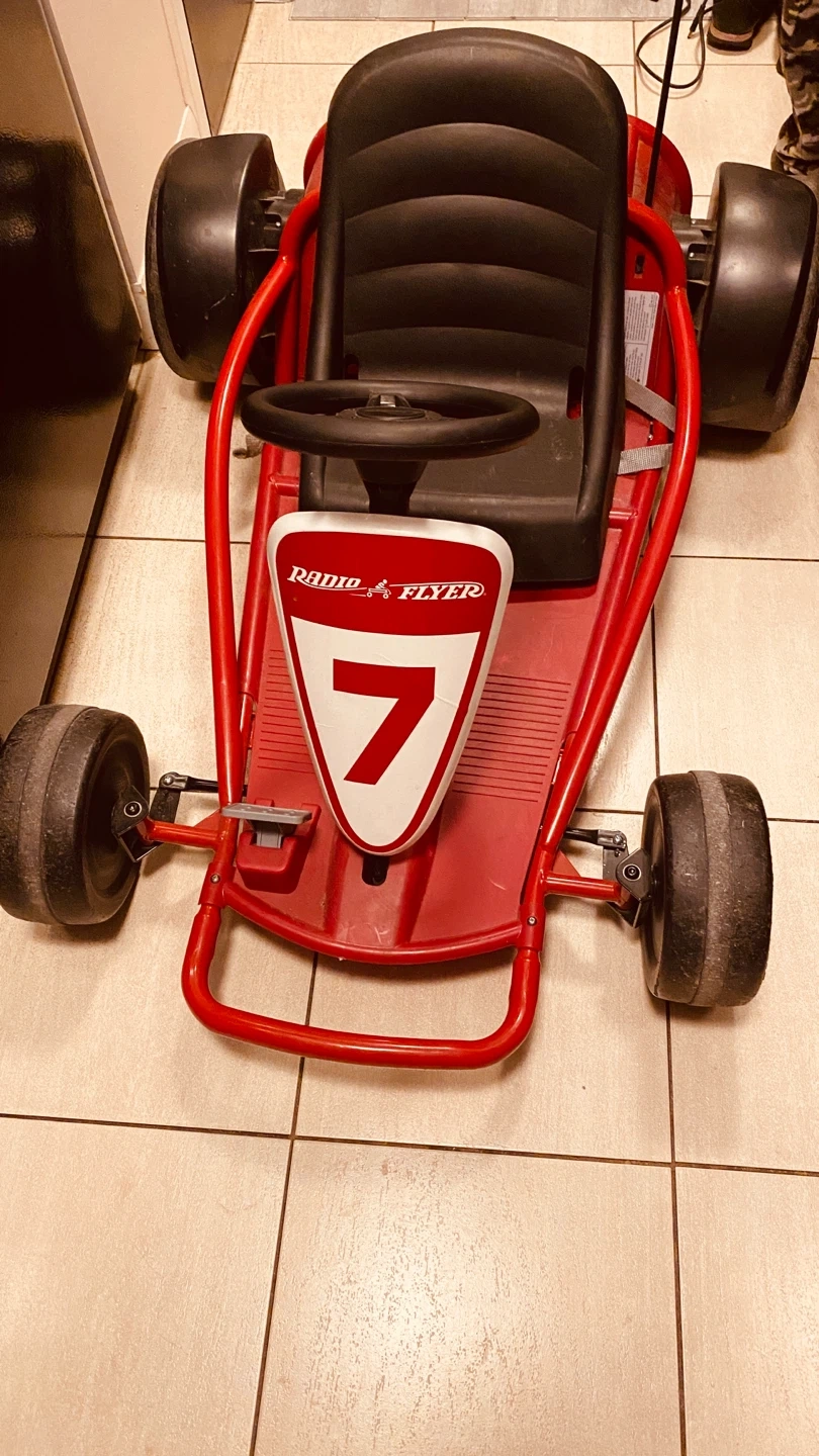 Selling a Radio Flyer Ultimate Go-Kart in red! It's suitable for kids aged 3-8 years. The dimensions are approximately 30" x 43". It's a fun ride-on toy for kids!