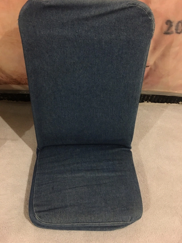 This is a used floor chair, perfect for flexible seating arrangements or lounging on the floor. It's in good condition and offers comfortable back support. It's so comfy. If the ad's up, the chair's available!