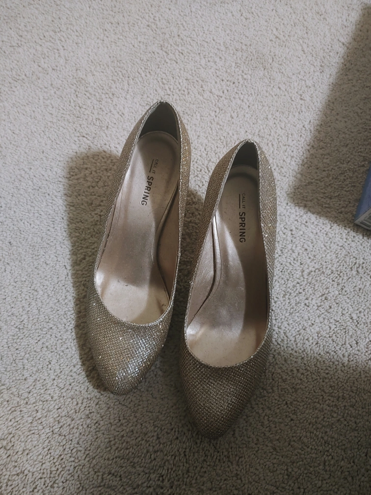 Selling a pair of Call It Spring heels with a glittery finish! They're perfect for a night out or a special occasion. Check them out! Size 8
