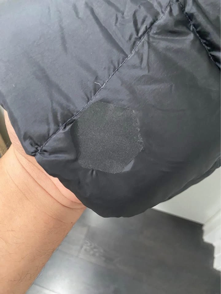10Pickup at 5035 Harvard Rd Mississauga No stains. Had a tear on the back but was patched. Patch is about 1.5 inches wide Size XL women’s