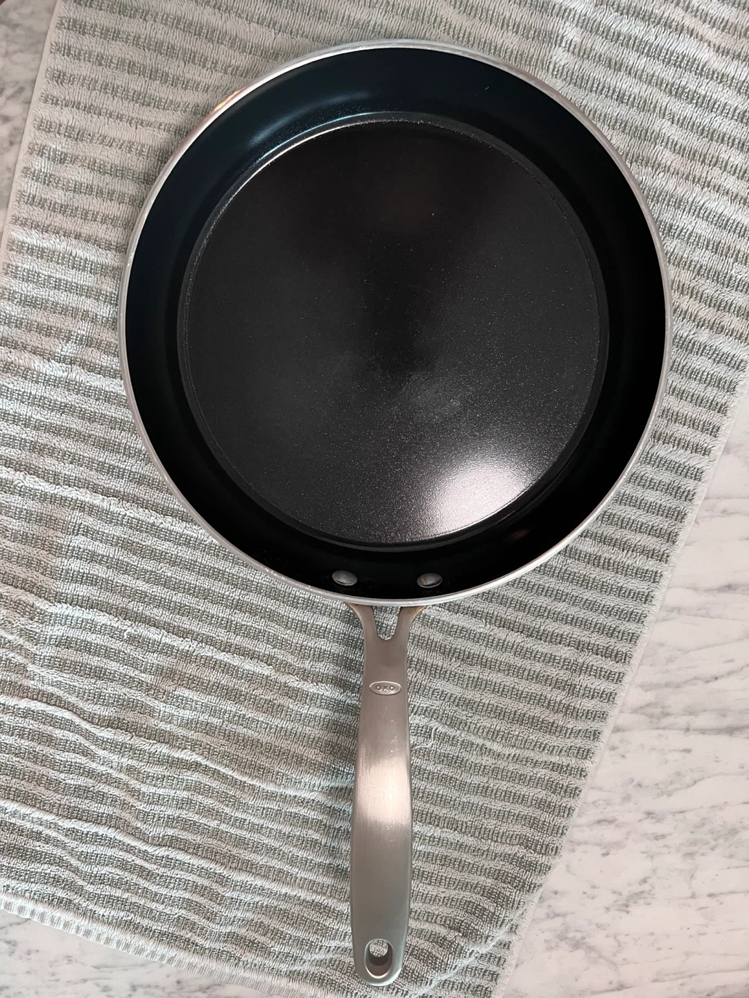 Selling an OXO non-stick frying pan. It's in great condition and ready for your next culinary adventure! This pan is perfect for everyday cooking and easy to clean up after. lightly used.