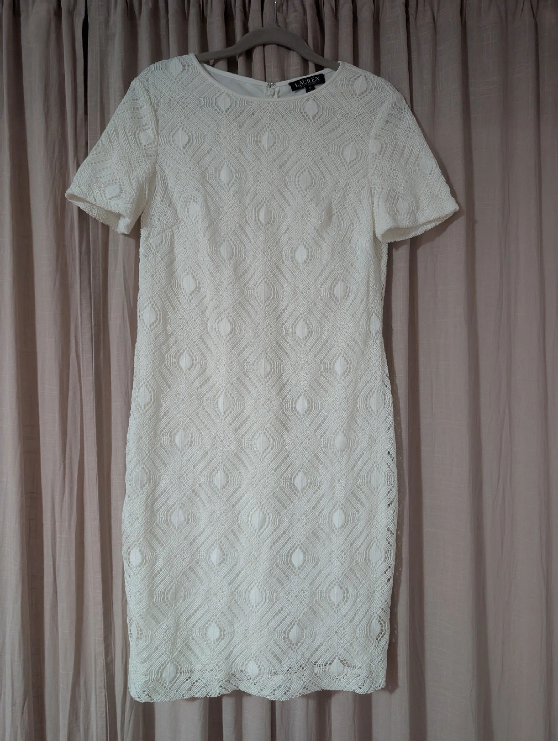 Selling a lovely off-white dress from Ralph Lauren in size 10! It's lacy with lining and zipper in the back, it's in great condition.