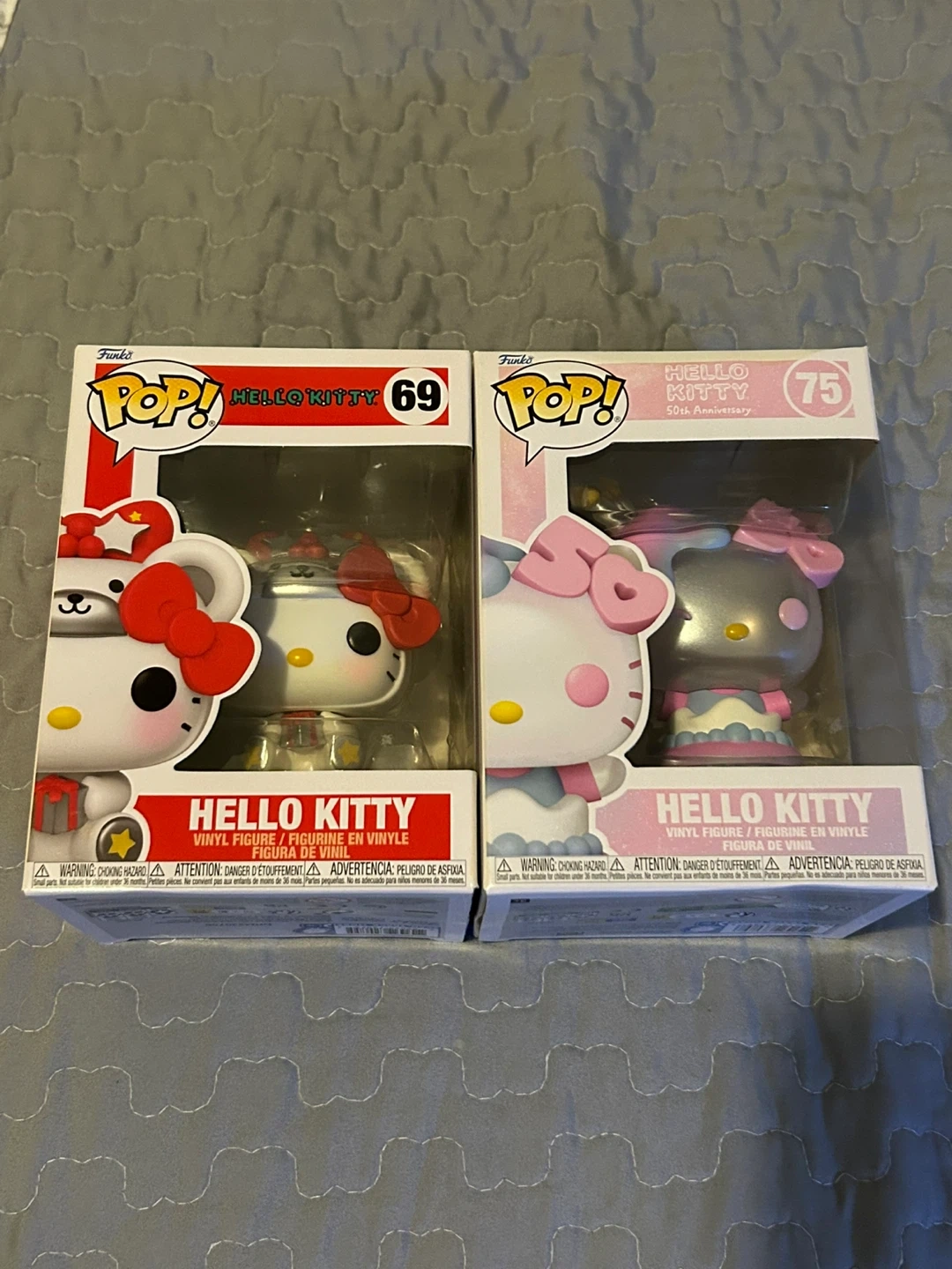 Selling two Funko POP! Hello Kitty vinyl figures. One is figure #69 and the other is the 50th Anniversary edition, figure #75. Great for any Hello Kitty collector! $20 each.