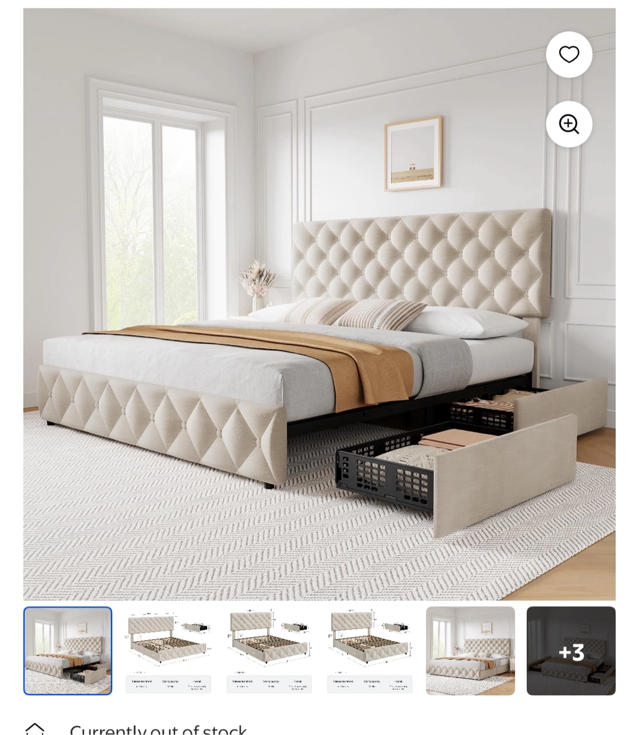 Selling a brand new Queen Bed frame! It's still in the original packaging. This stylish bed frame features a tufted headboard and convenient under-bed storage drawers. Perfect for adding a touch of elegance and functionality to your bedroom