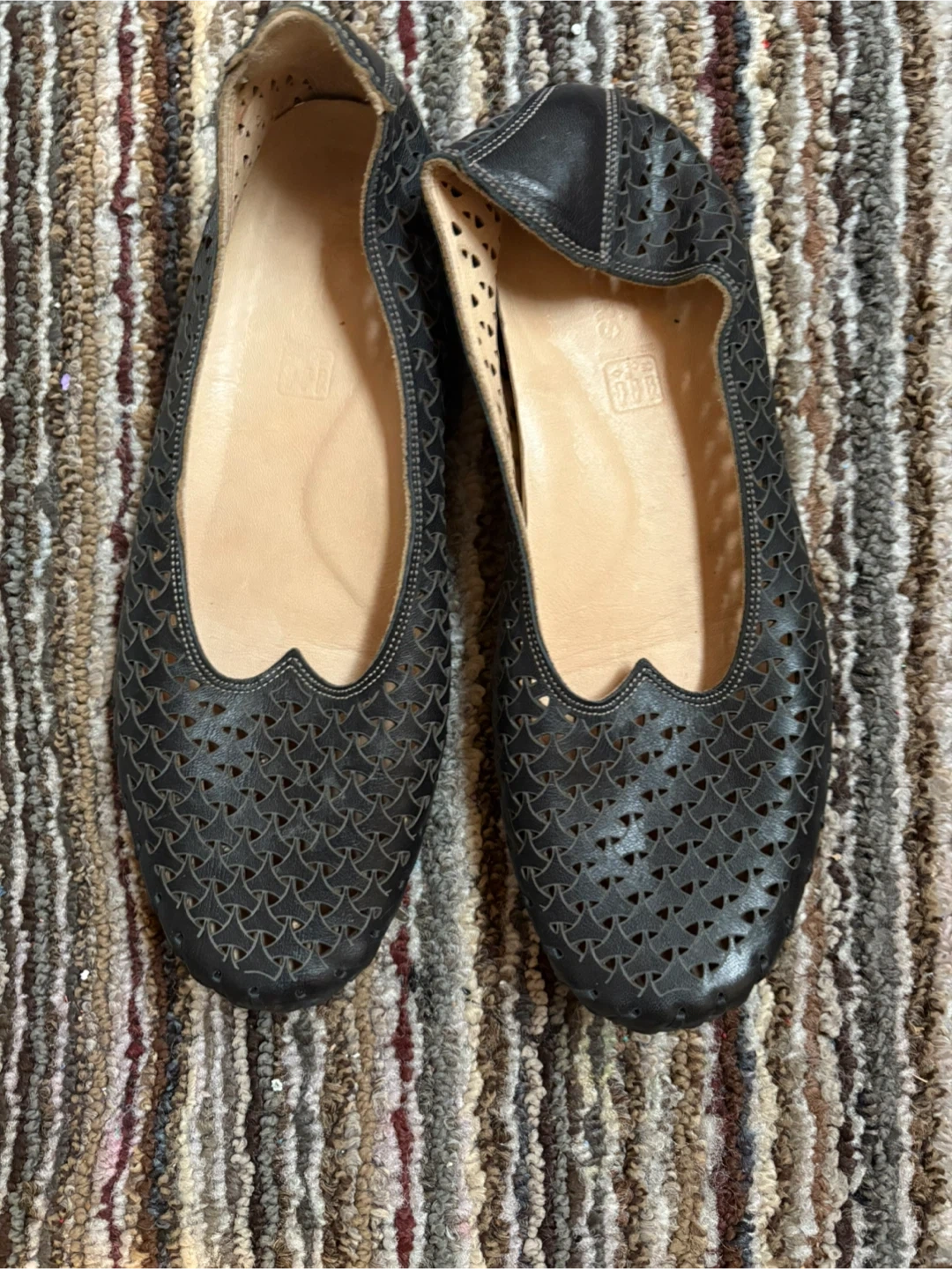 Cute black leather flats, perfect for everyday wear! They're in good condition and ready for a new home. Size 10.