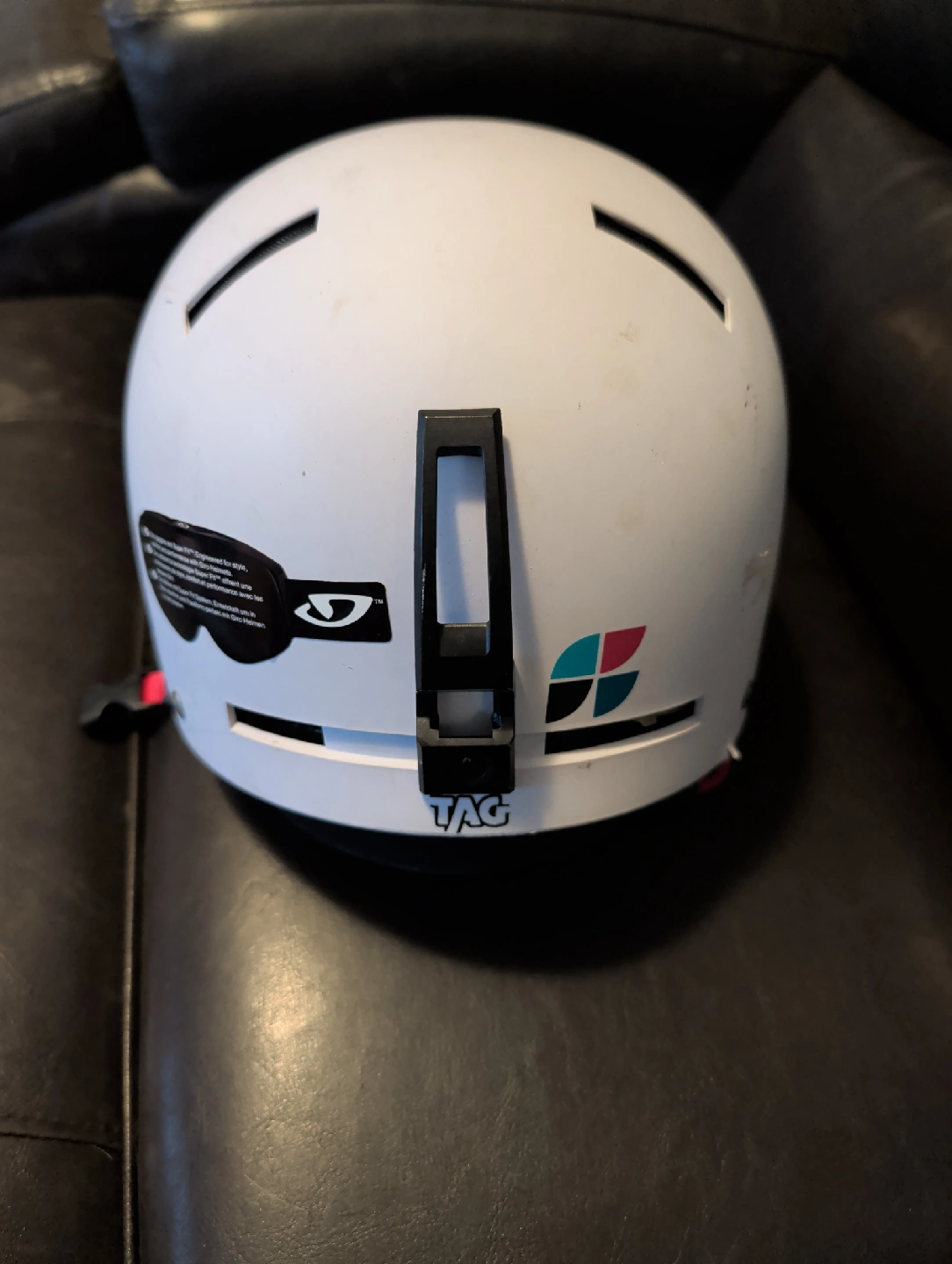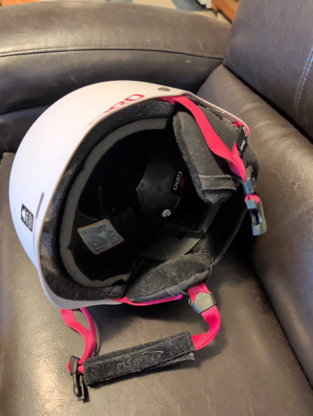 10Giro ski/snowboard helmet in great condition! It's white with a black goggle clip in the back and some colourful accents. Ready for the slopes!