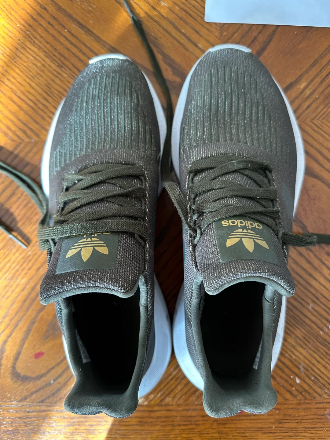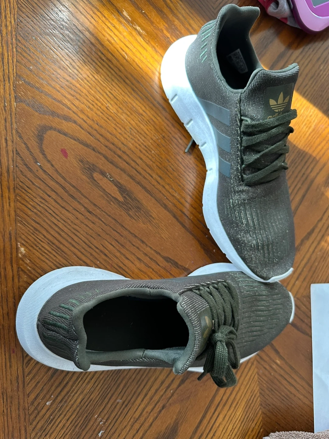 Selling a pair of Adidas Swift Run shoes in olive green. They're in great shape and ready for a new home. These shoes are lightweight and comfortable, perfect for everyday wear