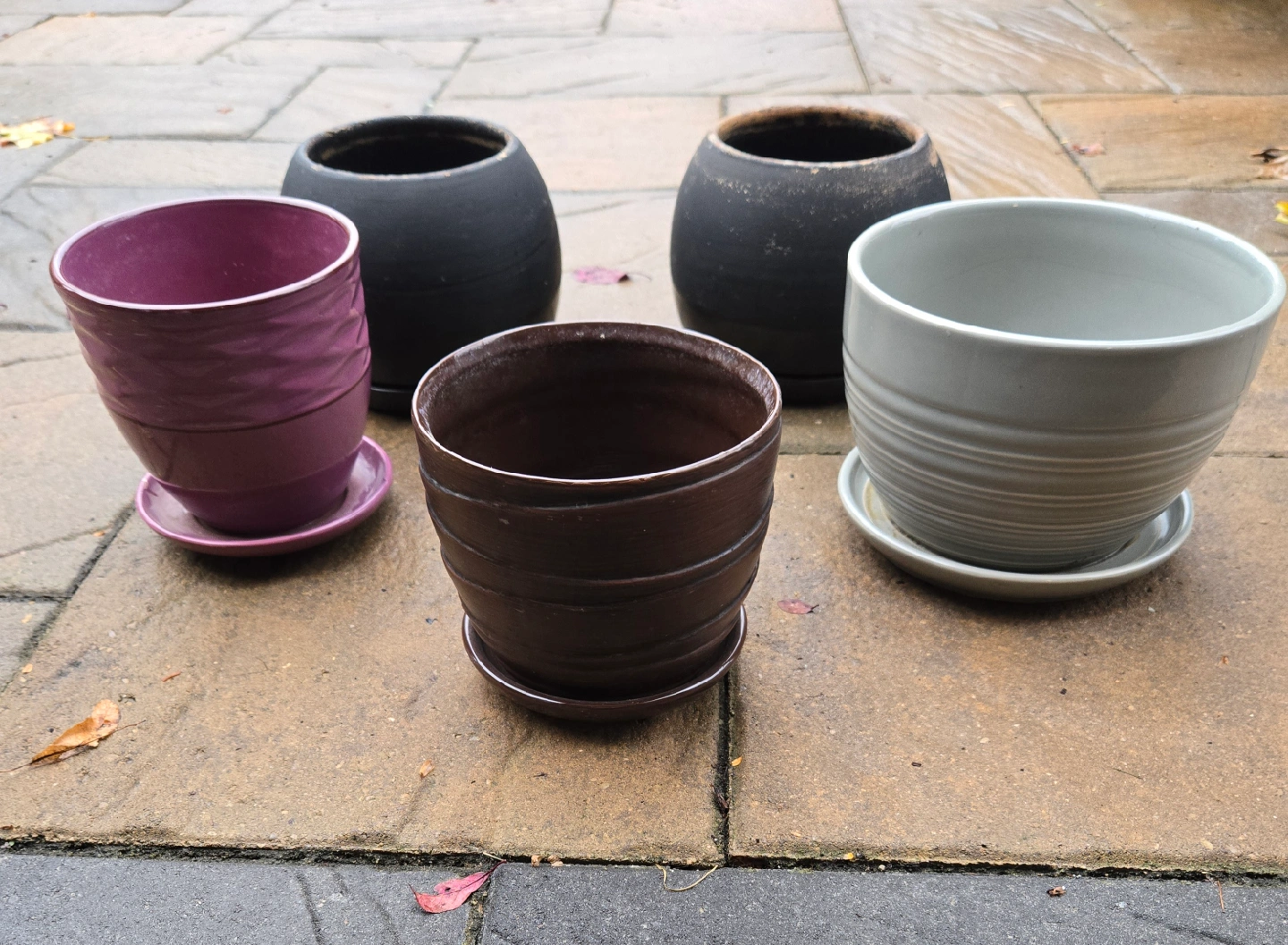 10Assorted ceramic 5-7" plant pots with whole $5/each Pick up in Richmond Hill Cash only