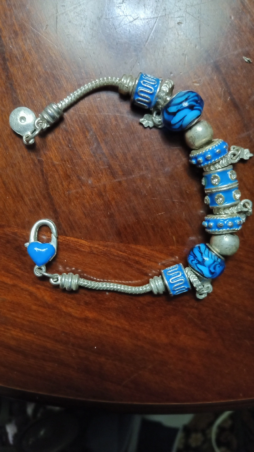 Selling a cute blue charm bracelet! It features a silver chain with various blue and silver beads and charms. Perfect for adding a pop of colour to your outfit